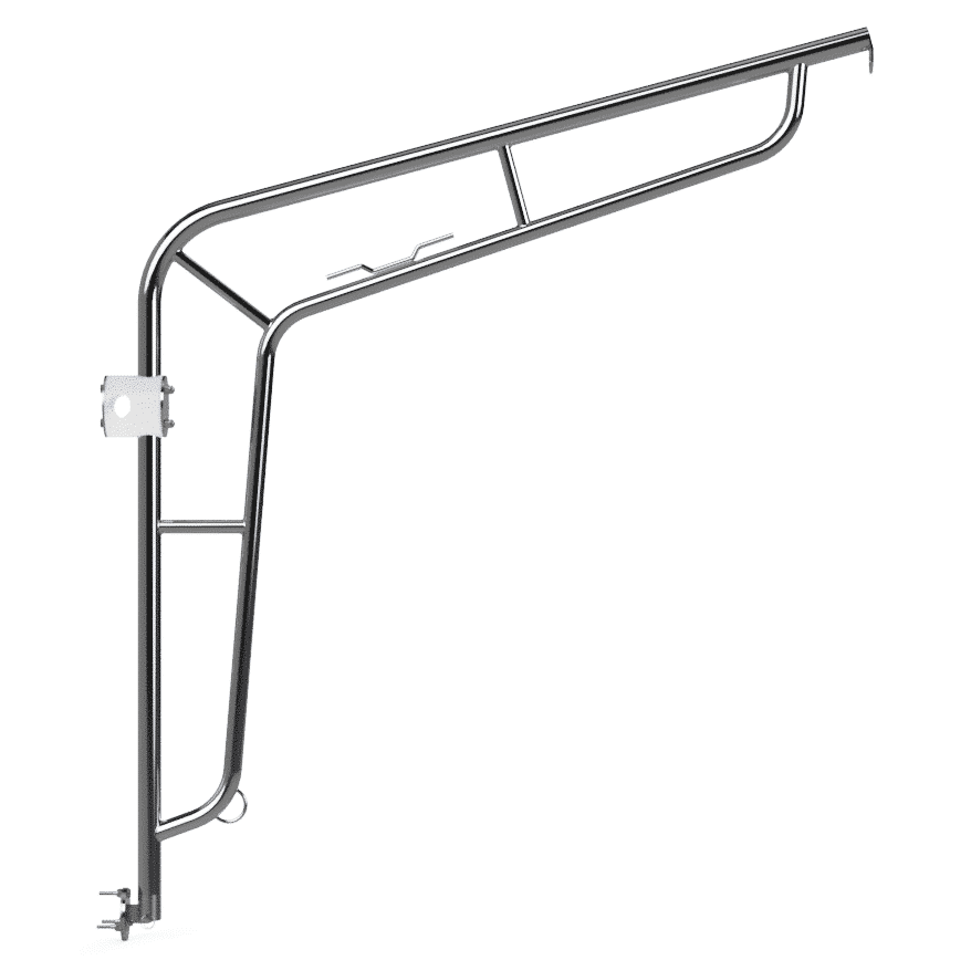 Construction: heavy-duty, 1 1/4-inch diameter x .120 wall, polished 316 stainless steel tube, continuously welded joints, cleat, and chain eye.