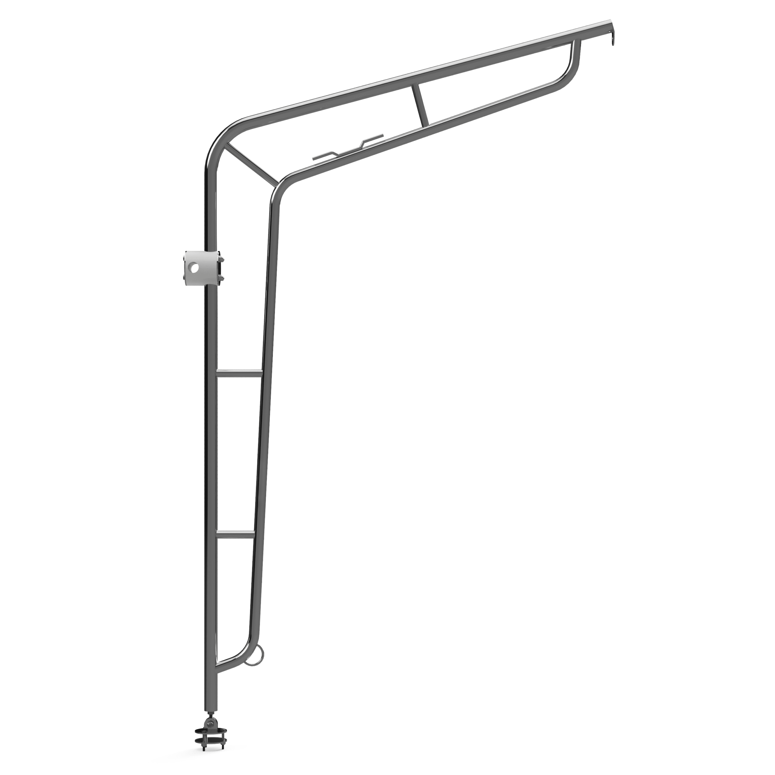 Construction: heavy-duty, 1.25-inch diameter x .120 wall, polished stainless steel tube, continuously welded joints, cleat, and chain eye.