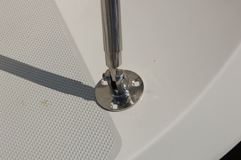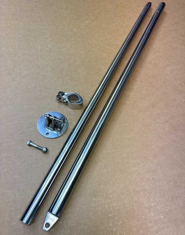 The Rail Support Arms are used to stiffen stern rails. Mounts to deck, transom, or swim platform and stern rail. Includes: two telescoping support arms with an adjustable range of 27 to 54 inches, a hinged jaw clamp, and a fully pivoting 2.75-inch base mount.